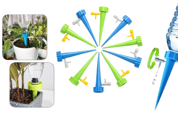 Το σετ αυτόματου ποτισματος είναι η ιδανική λύση για όσους ξεχνούν περιστασιακά να ποτίσουν τα φυτά εσωτερικού χώρου. Απλά βιδώστε το ακροφύσιο στο σημείο της φιάλης όπου βρίσκεται το πώμα και θα αρχίσει να ποτίζει. Το μόνο που θα χρειαστεί να κάνετε είναι να γεμίζετε το μπουκάλι με νερό πού και πού. Απλό και πρακτικό.